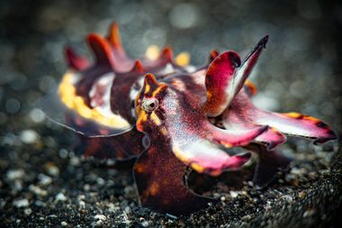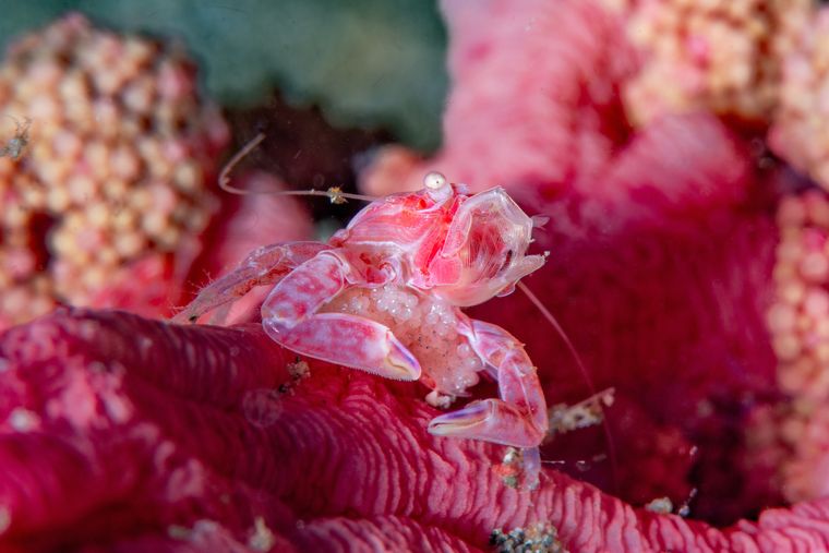 Die Honeycomb Butterfly Sea Slug (Doto greenamyeri) ist eine aussergewöhnliche Nacktschnecke mit einer markanten, wabenartigen Struktur auf dem Rücken. Mit einer Grösse von nur ca. 1 bis 2 cm gehört sie zu den winzigen, aber visuell sehr auffälligen Makro-Motiven. Die erhabenen, honigwabenähnlichen Papillen verleihen ihr ein fast grafisches Erscheinungsbild. Diese Art lebt bevorzugt auf Hydroiden, von denen sie sich auch ernährt, und bewegt sich langsam und bedacht. Durch ihre klare Struktur, die feinen Details und den starken Kontrast zum Untergrund ist die Honeycomb Butterfly Sea Slug besonders beliebt bei Makro- und Supermakro-Fotografen und gilt als echter Geheimtipp im Muck-Diving.