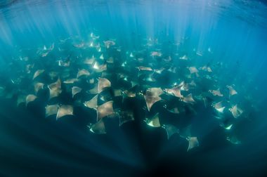 Die Gewässer von Socorro und dem Sea of Cortez ziehen mit ihrer Artenvielfalt Taucherinnen und Taucher aus aller Welt an. Eines der grössten Highlights sind die majestätischen Mantas, Walhaie, Seehunde und Buckelwale, die hier zu beobachten sind. Daneben gibt es auch verschiedene Haiarten wie Galapagos- und Tigerhaie sowie Dogtooth-Thunfische, die durch die Strömungen ziehen. Abgelegene Riffe und tiefblaues Wasser schaffen ideale Bedingungen für Grossfischbeobachtungen – ein Ort, an dem jede Begegnung mit den Ozeanriesen magisch bleibt.