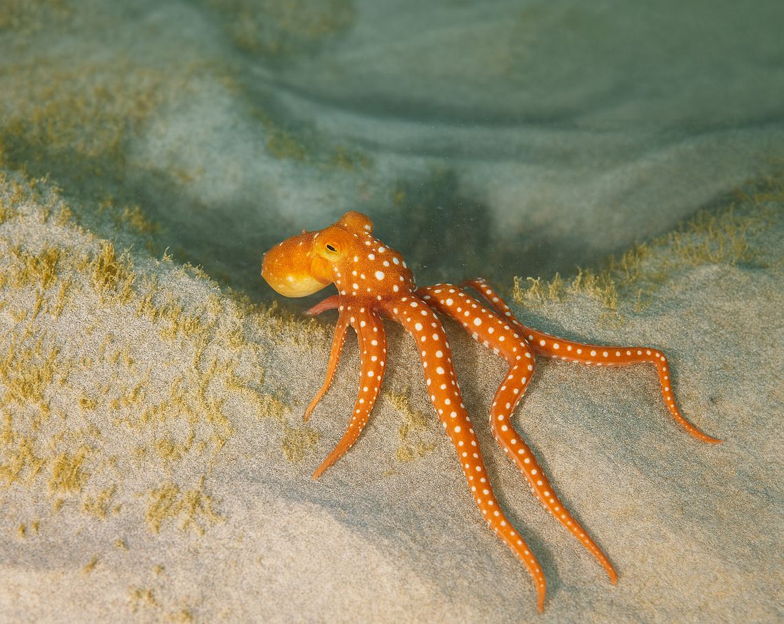 Fuerteventura zeichnet sich durch weite sandige Plateaus, Lavakanten und ruhige Bedingungen aus. Rochen, Engelhaie, Barrakudas und Schwarmfische sind häufig zu sehen. Gute Spots finden sich rund um Morro Jable, Caleta de Fuste und El Jablito.